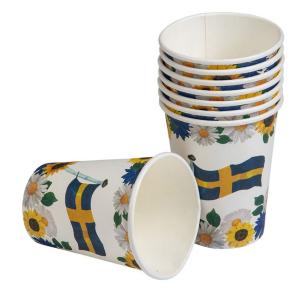 Skapa svenska minnen med våra flaggmönstrade pappersmuggar! Perfekta för studentfiranden, dop och midsommarfesten för svensk stolthet!
