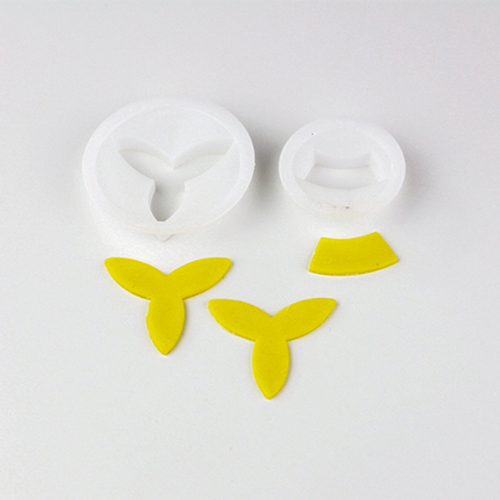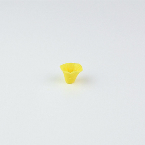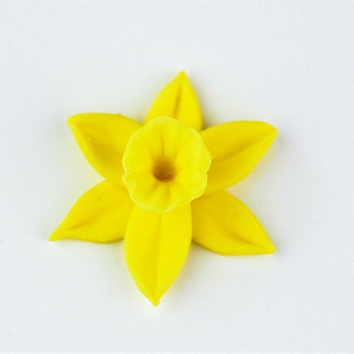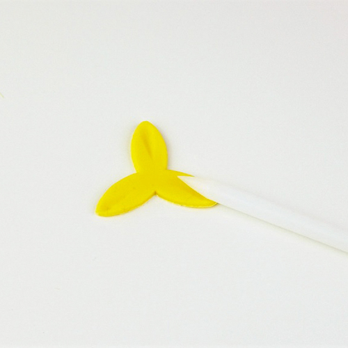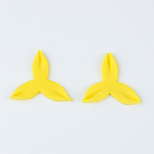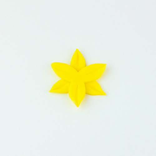 Kavla ut gul marsipan eller sockerpasta och stick ut två stycken kronblad och en del som blir centrum i blomman.
