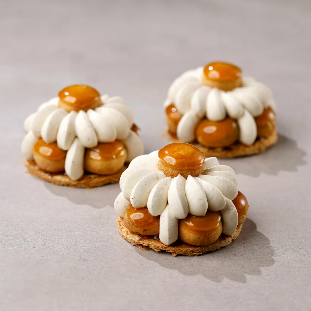 Med denna tyll kan du enkelt återskapa de ikoniska detaljerna i en Saint-Honoré-tårta, denna delikata tårta kännetecknas av en smördegsbotten, fylld med lättvispad grädde och ett lager av éclairsfyllning med vaniljsås. Med ST Honoré tyllen kan du forma perfekta blomblad och eleganta mönster.